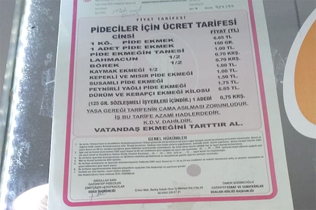 PİDE EKMEĞİNDE İNDİRİM YOK TARİFE ÜZERİNDEN SATIŞ YAPILIYOR