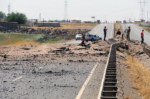 MARDİN'in Derik İlçesi'nde PKK'lı teröristler uluslararası İpek Yolu üzerinde tuzakladığı patlayıcıyı, zırhlı aracın geçişi sırasında uzaktan kumandayla infilak ettirmesi sonucu 3 polis şehit oldu.