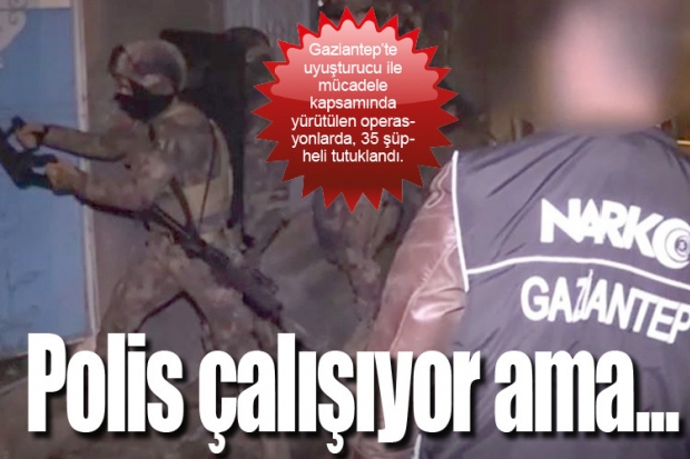 Gaziantep’te uyuşturucu ile mücadele kapsamında yürütülen operasyonlarda, 35 şüpheli tutuklandı.