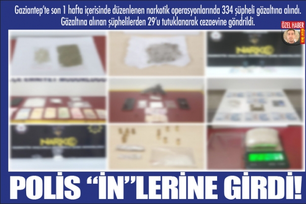 Gaziantep polis son bir hafta içerisinde üst üste düzenlediği operasyonlarda 334 şüpheliyi gözaltına aldı. Uyuşturucu satıcılarına yönelik sürdürülen çalışmaların hız kesmeden devam edeceğini açıklayan emniyet yetkilileri, torbacı tabir edilen satıcılara yönelik çalışmalarında artarak devam ettiğini dile getirdiler.