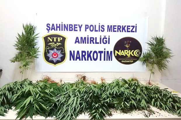 Şahinbey İlçe Emniyet Müdürlüğü Uyuşturucu İle Mücadele Ekiplerince yapılan çalışmalarda, H.G. isimli şahsın ikametinde uyuşturucu madde ektiği bilgileri alınması üzerine ikamete operasyon yapıldı. Polis ekiplerinin aramasında ikametin çatı kısmında üzerleri bezlerle gizlenmiş 12 adet saksıya ekili vaziyette 23 kök Hint keneviri ele geçirildi.