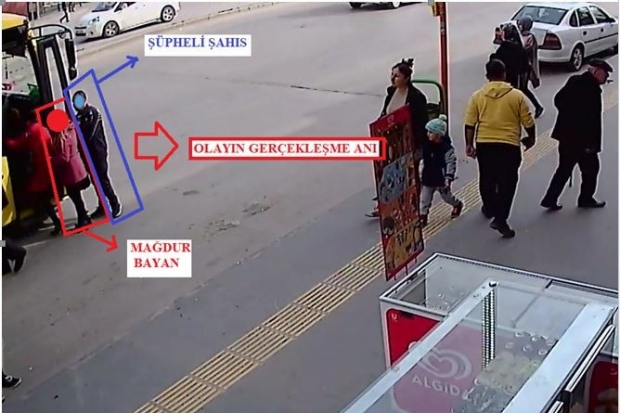 Asayiş Şube Müdürlüğü Yankesicilik ve Dolandırıcılık Büro Amirliği görevlileri olayların meydana geldiği özel şehir içi halk otobüsleri ile otobüs duraklarında görevlendirilerek çalışmalar başlatıldı. Halk otobüsleri içerisinde ve olayların gerçekleştiği güzergah üzerinde bulunan güvenlik kamera görüntülerinin de titizlikle incelenmesi sonucu yapılan çalışmalarda, C.Ö. isimli şüpheli şahıs yakalanarak gözaltına alındı. Hakkında yapılan yasal işlemler sonrası adli makamlara sevk edilen şüpheli şahıs tutuklanarak cezaevine teslim edildi.