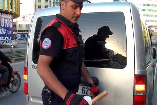 Gaziantep'te polisin durdurmak istediği alkollü şahıs, davulcu tokmağı ile polise saldırdı.