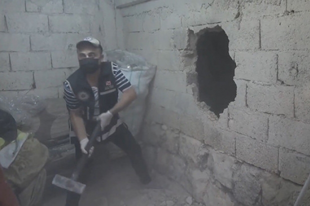 Gaziantep'te Kaçakçılık ve Organize Suçlarla Mücadele şubesi ekipleri, sahte alkol imalatı yapılan gizli mahzene balyozlarla duvarı yıkarak girebildi. Ekipler içerideki yaklaşık 2,5 ton alkol, şişe, kapak, etiket ve damıtma bidonuna el koydu.