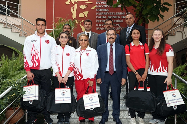 GAÜN Rektörü Prof. Dr. Ali Gür, çeşitli spor dallarında Türkiye ve Dünya derecesi yapan sporcuları kabul ederek kutladı.