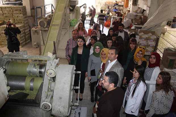 Gaziantep Üniversitesi Nizip Meslek Yüksekokulu öğrencileri, ziyaret ettikleri sabun fabrikasında sabun üretimini öğrendi.