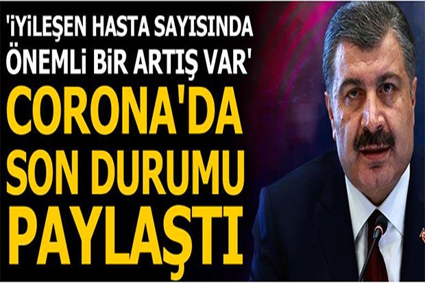 Sağlık Bakanı Fahrettin Koca, Twitter'dan yaptığı paylaşımda, "İyileşen hasta sayısında,bugün önemli bir artış var. Yoğun bakım ve entübe hasta sayısında ise azalma devam ediyor. Elde edilen başarı, 83 milyonun gösterdiği uyumun sonucu. Yeni hayat tarzımız; kontrollü sosyal hayat, hep birlikte tedbir” ifadelerine yer verdi.