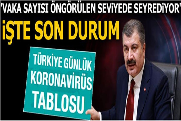 Sağlık Bakanı Fahrettin Koca, Twitter'dan yaptığı paylaşımda, “Vaka sayısı öngörülen seviyede seyrediyor. Solunum desteğine ihtiyaç duyan hasta sayısı azalmaya devam ediyor. Gelecek günler, el hijyenine özene; maske ve sosyal mesafe kuralının her ikisine birlikte uymamıza bağlı. Daha sıkı tedbir, daha iyi sonuçtur” dedi.