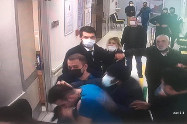 Edinilen bilgiye göre olay, Karataş Mahallesi'ndeki özel bir hastanenin acil servisinde gece saatlerinde yaşandı. İddiaya göre, gece saatlerinde evinde düşme sonucu başından yaralanan Muzaffer B., tedavi için oğulları Emrah B. ve Hanifi B. tarafından özel hastaneye getirildi. Hastaneye geldikten kısa süre sonra taşkınlık çıkarmaya başlayan ve kendilerine müdahale edilmediğini iddia eden yaralı baba ve iki oğlu, sağlık çalışanlarına hakaret etmeye başladı. Hakaret dozunu arttırarak sağlıkçılara saldırmaya başlayan 3 şüpheli şahıs, acil servisi savaş alanına çevirdi.