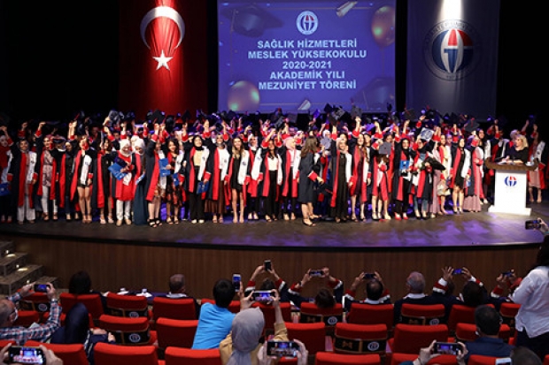 Mezuniyet Töreni; Yüksekokul bünyesindeki 8 programdan mezun olup dereceye girenlere belge ve hediye takdim edilmesi sonrasında, Öğretim Görevlisi Mehmet Erdem tarafından GAÜN Sağlık Hizmetleri Meslek Yüksekokulu andı okutuldu. Tören, öğrencilerin hep birlikte 10’ncu Yıl Marşı eşliğinde havaya kep atmasıyla sona erdi.
