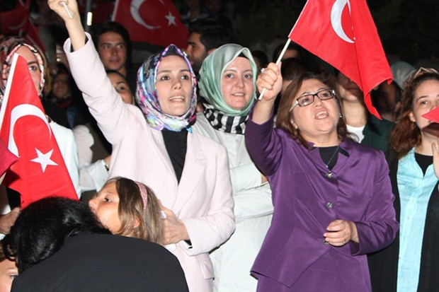 Gaziantep Belediye Başkanı Fatma Şahin, darbe girişiminin yaşandığı gün İstanbul’da olduğunu söyledi. Bir televizyon programında girişimi kanal çalışanlarından öğrendiğini belirten Şahin hemen Gaziantep’e dönmek için Atatürk Havaalanı’na doğru yola çıktığını kaydetti. Şahin, Cumhurbaşkanı Erdoğan’ın o esnada helikopteriyle Atatürk Havaalanı’na inmek üzere olduğunu öğrendiğini sözlerine ekledi. Yolda giderken darbecilerin vatandaşlara karşı ateş açtığını gördüğünü üzülerek söyleyen Şahin, "Bir taraftan Cumhurbaşkanımıza ulaşmaya çalışıyoruz. Bir taraftan F-16’lar alçaktan uçuyor. Ben zannediyorum ki Cumhurbaşkanımızı korumaya geldiler. Kandile atmadığı bombayı Cumhurbaşkanımıza atmaya geldiler" dedi.