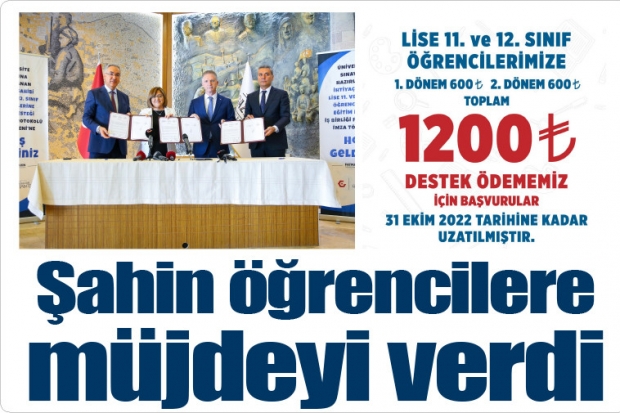 Gaziantep Büyükşehir Belediyesi’nin Gaziantep Valiliği ve İl Milli Eğitim Müdürlüğü iş birliğinde 2022-2023 eğitim ve öğretim yılında, üniversite sınavına hazırlanan ve Gaziantep sınırları içerisinde ikamet eden ihtiyaç sahibi 11 ve 12’nci sınıf öğrencilerine yapacağı yıllık bin 200 lira maddi destek için son başvuru tarihi 31 Ekim’e kadar uzatıldı.