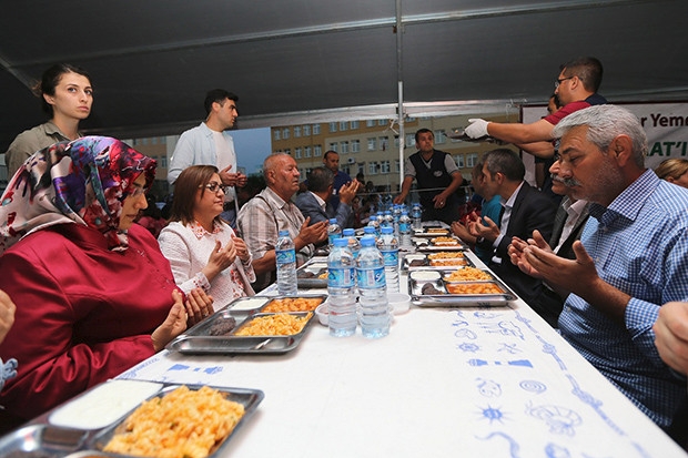 Gaziantep Büyükşehir Belediye Başkanı Fatma Şahin, Düztepe Hatice Karslıgil İlkokulu bahçesi içerisinde Büyükşehir Belediyesi tarafından kurulan iftar çadırında vatandaşlarla iftaryaptı.