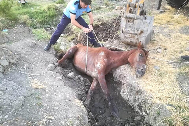 Kurtarılan at olay yerinden hızlıca uzaklaştı.