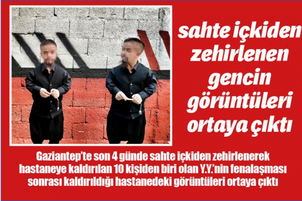 Nizip ilçesinde aldığı sahte içkiden zehirlenen 10 kişiden biri olan 28 yaşındaki Y.Y, yaşadığı kusma ve ağrılar üzerine ilçedeki özel bir hastaneye kaldırıldı. Hastane acilinde bilinci yarı açık durumda sedyede yatan Y.Y., o anlarda yakınları tarafından cep telefonu kamerası ile görüntülendi. Görüntülerde gözleri yarı açık bulunan Y.Y.'nin üzerindeki kıyafetlerinin ise battığı görüldü. Cep telefonu ile Y.Y'nin son durumunu görüntüleyen yakınının ise videoda, "Bu adamı bu hale düşürenlerin çocuğu da bu hale düşsün. Yazık, anası, babası olmayan bir çocuğa bu zulmü yapıyorsanız size yazıklar olsun" ifadeleri yer aldı.