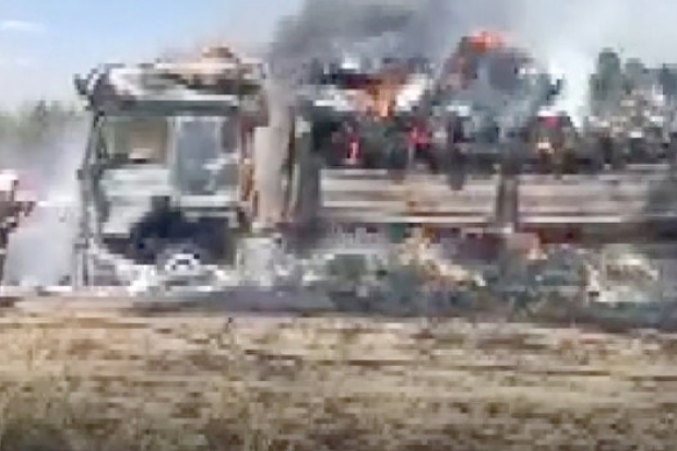 Olay, Gaziantep'in Nurdağı ilçesi Yeni Mahalle yakınlarındaki buğday ekili alanda meydana geldi. İddiaya göre, hava sıcaklıklarının da etkisiyle balataları aşırı derece ısınan saman balyası yüklü tır bir anda alev aldı. Kısa sürede büyüyen alevler tırın tamamını sararken, buğday ekili araziye de sıçradı. Olayı gören vatandaşlar durumu sağlık ve itfaiye ekiplerine bildirdi. Olay yerine gelen itfaiye ekipleri, yangına müdahale ederek daha fazla büyümeden söndürdü. Yangın sonucu tır küle dönerek kullanılamaz hale gelirken, 5 hektarlık buğday ekili alan da zarar gördü.