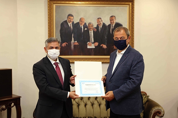 SGK İl Müdürü Mehmet Uzun, SANKO Holding Yönetim Kurulu Başkanı Adil Sani Konukoğlu’nu ziyaret ederek SGK Başkanlığı’ndan gönderilen “Teşekkür Belgesi”ni sundu.