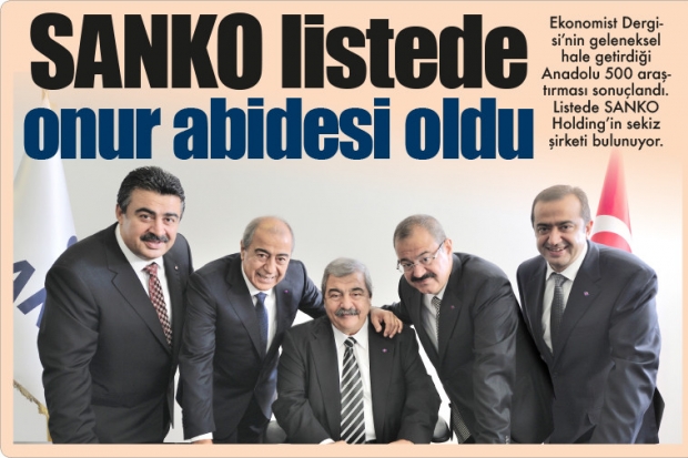 Ekonomist Dergisindeki haberde, SANKO Holding’in listede sekiz şirketi bulunduğuna vurgu yapılarak, “Gaziantep’ten dünyanın denimde en önemli üreticilerinden biri olmayı başaran ve Anadolu’da sanayileşmenin öncü gruplarından olan SANKO Holding, bu yıl da listemizin ilk sırasındaki yerini koruyor” denildi.