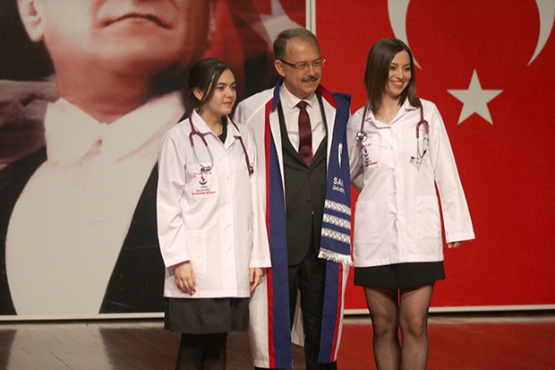 Konuşmalarında ardından çeşitli dallarda bildiri yayınlayan öğrencilere teşekkür belgeleri takdim edildikten sonra Tıp Fakültesi öğrencilerine önlük giydirildi.