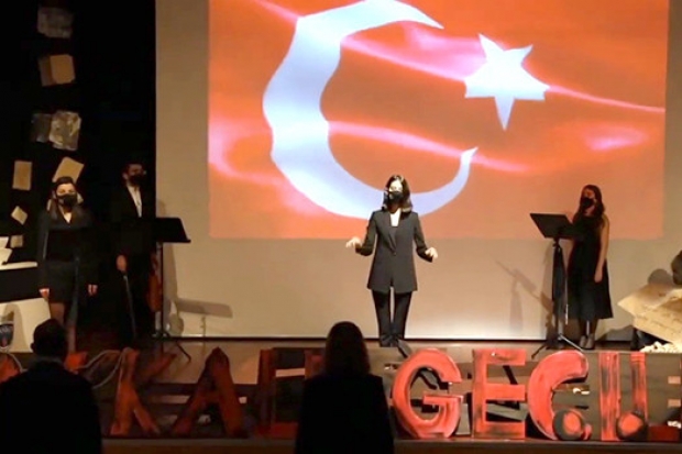 Abdulkadir Konukoğlu Kültür Merkezi’nde düzenlenen törene, okulda eğitim gören öğrenciler sınıflarında, evlerinde online eğitim gören öğrenciler ise uzaktan erişimle katıldı.