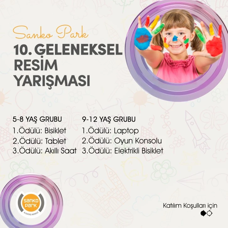 Gaziantep’in yaşam alanı Sanko Park Alışveriş Merkezi, 23 Nisan Ulusal Egemenlik ve Çocuk Bayramı’na özel ödüllü resim yarışması düzenliyor.
