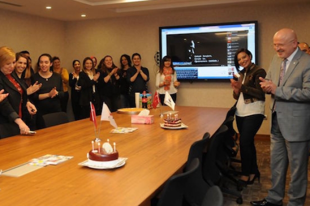 Rektör Prof. Dr. Sınav’ın öğretim üyelerine karanfil armağan emesi ve öğretmeler gününü kutlamasının ardından, pasta kesildi.