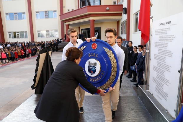 Saygı duruşunda bulunulması ve İstiklal Marşı’nın okunmasının ardından, Özel SANKO Okulları Genel Müdürü Melike Toklucu tarafından Atatürk Büstüne çelenk konuldu.