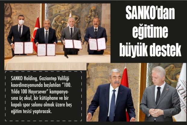 Gaziantep Valiliği’nde düzenlenen protokol imza törenine, Vali Davut Gül, SANKO Holding Onursal Başkanı Abdulkadir Konukoğlu, Yönetim Kurulu Başkanı Adil Sani Konukoğlu ve İl Milli Eğitim Müdürü Yasin Tepe katıldı. Vali Davut Gül, törende yaptığı konuşmada; SANKO Holding ile ikisi 32’şer, birisi 24 derslikli olmak üzere toplam 88 derslikli üç okul, bir spor salonu ve bir de şehir merkezine yapılacak ve 24 saat hizmet verecek kütüphane olmak üzere beş eğitim tesisinin protokolünü imzaladıklarını söyledi. Gaziantep Spor Lisesi’nin kampüs inşasının devam ettiğine dikkat çeken Gül, SANKO Holding Yönetim Kurulu Başkanı Adil Sani Konukoğlu’nun Gaziantep Futbol Kulübü başkanlığı döneminde takımı Süper Lig’e çıkardığını anımsattı. Gül, “Konukoğlu Ailesi’nin futbola, SANKO’nun Gaziantep Futbol Kulübü’ne, spora verdiği desteği biliyoruz. 24 derslikli Gaziantep Spor Lisesi’nin ismi Adil Sani Konukoğlu Spor Lisesi olarak devam edecek. Hayırlı olmasını diliyorum” dedi.