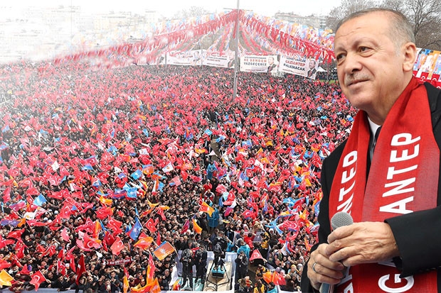 ''Gaziantepli çiftçilerimize toplam 1 buçuk katrilyon tutarında tarımsal destek verdik. Gaziantep’e son 17 yılda 2 yeni organize sanayi bölgesi, 2 teknopark, 11 araştırma geliştirme merkezi, 4 tasarım merkezi kurduk" şeklinde konuşan Erdoğan sözlerini şu şekilde sürdürdü; ''Gaziantepli yatırımcılarımızı 24 katrilyonluk yatırım ile destekleyerek 69 bin kişilik ilave istihdam oluşturduk. Şehrimizdeki 87 bin işyerimize toplam 2 katrilyon liralık SGK prim teşviki verdik. İstihdam için, üretim için yatırım gerekli. Gaziantep’te 500 hektarlık bir alanda, içinde her türlü lojistik hizmetlerin verildiği, kara limanı fonksiyonu görecek gümrük işlemlerinin yapılabildiği otoyol ve demiryolu bağlantısı olan bir lojistik köy kuruluyor. Tahsis v imal çalışmaları bitti, yakında inşasına başlanıyor. Ali Nacar Camisinden Boyacı Camii’ne, Tütünhan’a kadar Gaziantep’te 49 tarihi eserimizi restorasyonunu yaptık. Merkezdeki Kanalıcı Camii’nin, Tabak Hamamı’nın restorasyon çalışmaları sürüyor. Gaziantep’te istinaf mahkemesini faaliyete geçirdik. Adalet Bakanı Gaziantep’ten. Gece gündüz çalıştık, şehrimizi eserlerle, hizmetlerle donattık. İnşallah önümüzdeki dönemde çok daha büyük yatırımlara imza atacağız. Biz ülkemiz ve memleketimiz için hizmetler için çalışırken birileri suyu bulandırmanın gayreti içerisinde. Milletin karşısına hep cilalı boyalı makyajlı çıkıyorlar. Sonra gerçekler yağmur gibi yağmaya başladığında işte o boyalar dökülüyor, hakiki yüzü çıkıyor. Seçimlerde bir cumhur ittifakı var, bir de CHP’nin etrafında kurulan, görünüşte yanında olan adı İYİ kendi bir hayli karışık olan bir parti ile isminden başka geçmişi ile bağlantısı kalmayan Saadet’in olduğu bir ittifak var. Ama ittifakın asıl ortağını sürekli gizlemeye çalışıyorlar. Çünkü bu parti sabıkalı, bu partinin ipi terör örgütünün elinde. Bu partiyi Ankara’daki genel merkezi değil, Kandil yönetiyor. Gaziantep’te işler daha da karışık. Sırtını Kandil’e dayayan ve oradan gücünü alan CHP aslında bunu destekliyor, ama bir başka adayın yanında gözüküyor. Kimin kimi desteklediği belli değil. Türk siyasetini bu duruma düşürmeye kimsenin hakkı yok. Çıkıp delikanlıca kim kiminle ittifak halinde, kim kimin belediye başkan adayını destekliyor, kim kimin meclis üyelerini kendi listesinden gösteriyor, söylesinler. Kurulan tezgahı ele veriyorlar. CHP demek çöp, çukur, çamur demektir. CHP demek yolsuzluk, yoksulluk, yasaklar demektir. Bunları ayaklarımızın altına almak için, 31 Mart en büyük fırsattır. Son 1 yıl içinde dördüncü defa Gaziantep’teyim. Yine de Gaziantep hasretimizi gideremiyoruz. Çünkü Gaziantep alın teriyle, göz nuruyla, ilimle, irfanla, yürek coşkusuyla, deruni bir aşkla yoğrulmuş bir şehirdir. Tatlısıyla, kebabıyla, her biri diğerinden lezzetli yemeklerinden oluşan mutfağıyla ülkemizi dünyada başarıyla temsil eden bu şehir için ne desek azdır.