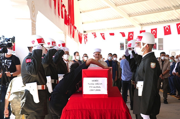 Cenaze namazı öncesi ve sonrası şehidin eşi Rukiye, babası Reşat ve annesi Cemile Aslan ile diğer yakınları tabuta sarılarak gözyaşı döktü.