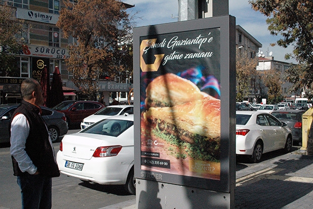 Gaziantep Büyükşehir Belediyesi tarafından Ankara caddelerindeki billboardlara asılan ve üzerinde "Şimdi Gaziantep’e Gitme Zamanı" sloganlı Gaziantep tanıtım afişleri Ankaralıların dikkatini çekiyor.