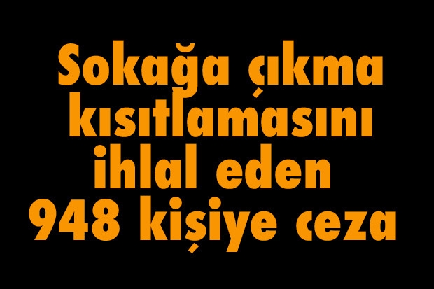 Gaziantep'te sokağa çıkma kısıtlamasını ihlal eden 948 kişiye ceza kesildi.