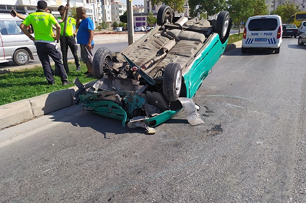 Gaziantep'te sollama yapmak isteyen sürücü direksiyon hakimiyetini kaybedince refüje çarparak takla attı. Meydana gelen kazada araç içerisinde bulunan 4 kişi hafif şekilde yaralandı.