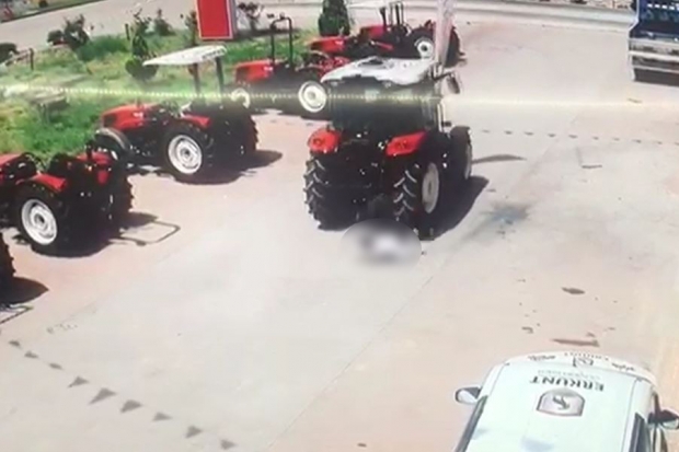 Gaziantep’in Şehitkamil ilçesinde bir traktör bayisindeki son iş gününde traktörün altında ezilerek feci şekilde yaşamını yitiren satış elemanın geçirdiği kaza güvenlik kamerasına yansıdı.