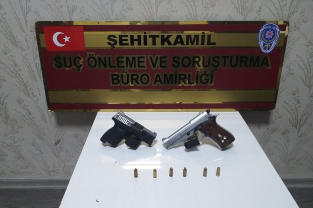 Gaziantep Emniyet Müdürlüğüne bağlı Şehitkâmil ilçe emniyet müdürlüğü ekipleri, tüfekle yaralama, yağma (gasp), uyuşturucu madde ticareti suçlarından aranan M.K isimli şüpheli Hoşgör Mahallesinde yapılan kovalamaca sonucu yakalanarak gözaltına alındı. Ekipler şahsın üzerinde yaptıkları arama sonucu 2 adet ruhsatsız tabanca ele geçirdi. Şüphelinin yasal işlemleri devam ediyor.