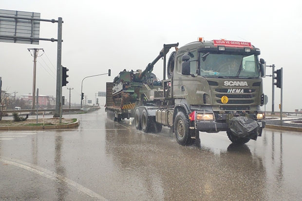 Bugünlerde yoğun bir şekilde geçiş yapan ve bazı birliklerden gönderilen obüs yüklü tırlar ile zıhlı personel taşıyıcılardan oluşan yaklaşık 10 araçlık konvoy, İslahiye’den geçerek Suriye sınır hattı istikametine devam etti.