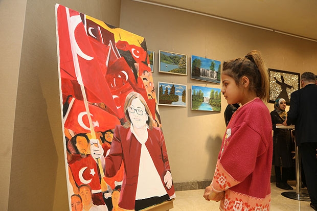Ensar Toplum merkezinin “Sosyal Uyum” kapsamında açtığı kursta eğitim alan 200 Suriyeli ve Türk çocuğun birlikte hazırladığı resim, mozaik, cam işleme ve fotoğraflar sergide yer aldı. Büyükşehir Belediye Başkanı Fatma Şahin ve Türkiye bayraklarının işlendiği çalışmalara yansıyan minnettarlık küçük gözlerden de okunuyordu.