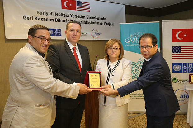 Başbakanlık Afet ve Acil Durum Yönetimi Başkanlığı (AFAD), Birleşmiş Milletler Kalkınma Programı (UNDP) ve Çevre Koruma ve Ambalaj Atıkları Değerlendirme Vakfı (ÇEVKO) işbirliği ile Gaziantep Büyükşehir Belediyesi Gazikültür A.Ş katkısıyla Kilis Öncüpınar ve Elbeyli Geçici Konaklama Merkezlerinde barınan Suriyeli mültecilere yönelik olarak “Çevre ve Atıkların Ayrı Biriktirilerek Geri Kazanımının Sağlanması” projesi bir otelin toplantı salonunda gerçekleşti.