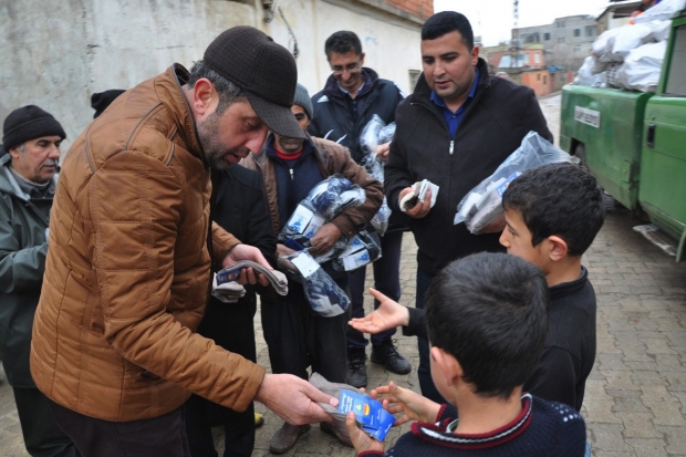 İslahiye ilçesinde tespit edilen yaklaşık 700 ihtiyaç sahibine İslahiye Belediyesi tarafından 200'er kiloluk odun ve ailelerin fert sayısına göre kışlık çorap dağıtıldı. Çuvalların içerisine konularak, belediyeye ait kamyonlarla mahallelere götürülen odun ve hayırseverlerin desteğiyle alınan çoraplar, belediye ekipleri tarafından ihtiyaç sahiplerine teslim edildi. Odun ve çorap dağıtımı ile ilgili bilgi veren İslahiye Belediye Başkanı Kemal Vural, "Ülkelerindeki savaştan kaçarak ülkemize ve ilçemize sığınan ve kamplarda yer bulamayan Suriyeliler, çok kötü şartlarda yaşam mücadelesi veriyor. Belediye olarak kendi imkanlarımız dahilinde ihtiyaçlarını karşılamaya çalışacağız" dedi. İhtiyaç sahiplerine Kaymakamlık tarafında kömür yardımı yapıldığını hatırlatan Vural, "Kömürü tutuşturacak odunu da biz belediye olarak karşılıyoruz. Böyle çok kötü şartlarda oturan vatandaşların evlerinin giderlerini kapı penceresini ve elektriğini çekiyoruz. 21. yüzyılda halen elektriksiz evlerde oturan insanlar var. Bunu da tüm dünyanın duyması gerekiyor" diye konuştu.