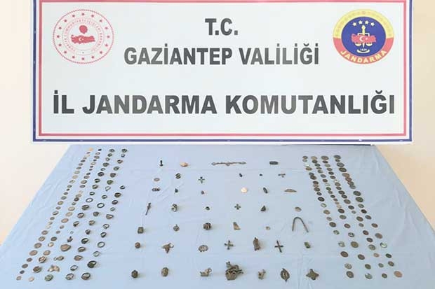 Gaziantep İl Jandarma Komutanlığı ekipleri tarafından yapılan operasyonda 225 adet tarihi eser ele geçirilirken, tarihi eserleri satmaya çalışan 2 şüpheli şahıs yakalandı.