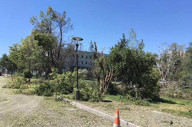 Türk Silahlı Kuvvetleri içerisinde bir grubun gerçekleştirdiği darbe girişimi sırasında gece bombaların atıldığı Türkiye Büyük Millet Meclisi'ndeki zarar gün yüzüyle ortaya çıktı. Uçaklar tarafından aralıklarla üç defa vurulan TBMM'de tavanlar çöktü, kulislerin camları kırıldı. Bombaların etkisiyle Meclis bahçesindeki ağaçlar zarar gördü.