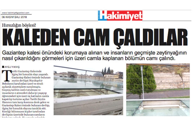 Tarihi Gaziantep Kalesi önünde geçtiğimiz günlerde ilginç bir hırsızlık olayı yaşanmıştı. Gaziantep Kalesi önünde bulunan ve Büyükşehir Belediyesi tarafından üzeri ve etrafı açılarak ziyaretçilere sunulan zeytin devlüpünün camları kimliği belirsiz kişilerce çalınmıştı.
