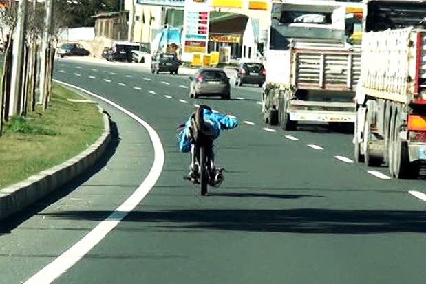 Şehitkamil ilçesi Organize Sanayi Bölgesi civarında, yanından geçen araçlara aldırış etmeden motosiklet üzerinde uzanarak seyreden genç, yaklaşık 3-4 kilometre boyunca yola bu şekilde devam etti. Aynı zamanda trafikte seyir halinde olan diğer araçlar arasında da zikzaklar çizerek geçen motosikletli genç bir süre sonra gözlerden kayboldu. Öte yandan, trafiği tehlikeye düşürerek seyreden ve ismi öğrenilemeyen genç sürücünün motosikletinde plaka olmamasının yanı sıra, ön far, sinyal lambaları ve benzeri birçok donanımının bulunmadığı gözlendi.