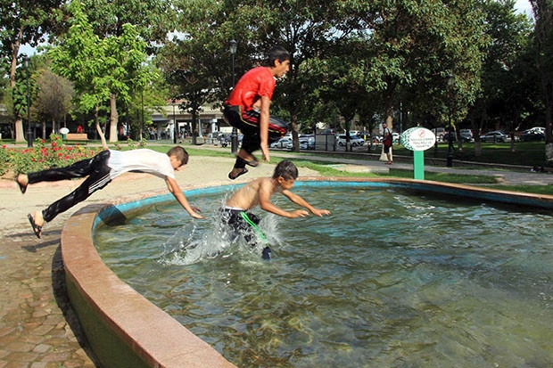 Gaziantep'te mevsim normallerinin üzerinde seyreden sıcak havadan en çok etkilenenler arasında çocuklar da bulunuyor. Her geçen gün daha da artan sıcak havalarda çocuklar, her türlü tehlikeye rağmen süs havuzlarına girerek, serinliyor. Yüzüncü Yıl Parkı'ndaki süs havuzu, gündüzleri 45 dereceye ulaşan sıcaklık nedeniyle çocukların serinleme mekanı oldu. Çocuklar elektrik çarpması ve boğulma gibi çeşitli tehlikelere aldırış etmeden, suda oynayıp, serinliyor. Çevredeki insanların şaşkın bakışlarına da aldırış etmeyen çocuklar, saatlerce yüzerek, eğlenceli zaman geçiriyor.