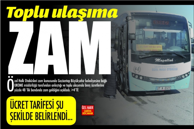 Gaziantep Umum Halk Otobüsleri Esnaf Odası Başkanı Sofu Çolak şu ifadelere yer verdi. "Gaziantep Büyükşehir Belediyesine bağlı UKOME müdürlüğü ile yapmış olduğumuz toplantı neticesinde halk otobüslerimizin maliyetlerinin artması sonucunda bizlere destekleme sözü verdiler buna göre otobüs binişlerindeki tarifelerimizde yüzde 48'lik bir zam geldi. Öğrenci binişlerinde ise 1.TL 85 kuruşluk ödeneği Gaziantep Büyükşehir Belediyesi karşılayacak" dedi.