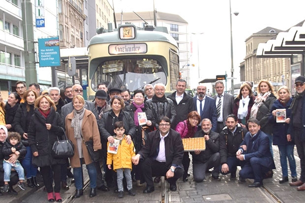 Frankfurt Gaziantep derneği tarafından Frankfurt Trafik İdaresinden (VGF) kiralanan nostaljik tramvay, Merkez Tren İstasyonu güney Tramvay durağından hareket etti.
