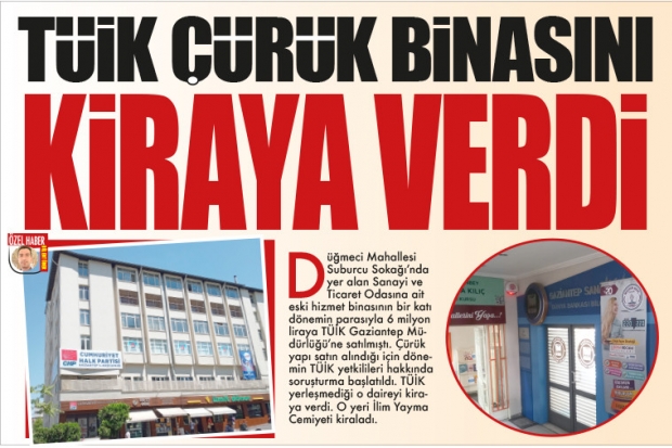 Düğmeci Mahallesi Suburcu Sokağı’nda yer alan Sanayi ve Ticaret Odasına ait eski hizmet binasının bir katı dönemin parasıyla 6 milyon liraya TÜİK Gaziantep Müdürlüğü’ne satılmıştı. Çürük yapı satın alındığı için dönemin TÜİK yetkilileri hakkında soruşturma başlatıldı. TÜİK yerleşmediği o daireyi kiraya verdi. O yeri İlim Yayma Cemiyeti kiraladı.