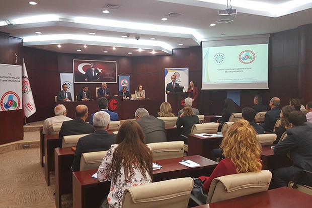 “Tüketici Sorunları Hakem Heyetlerini Destekleme Projesi” eğitimi açılış toplantısı Gümrük ve Ticaret Bakanlığı Tüketicinin Korunması ve Piyasa Gözetimi Genel Müdür Yardımcısı Bayram Uzunoğlan'ın katılımı ile Gaziantep Ticaret Odası Meclis salonunda gerçekleştirildi.