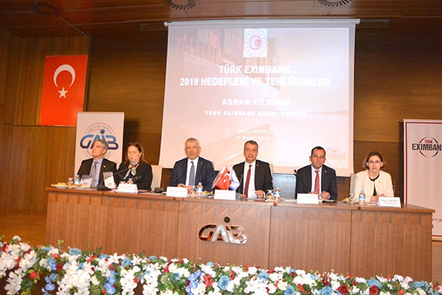 2019 yılında Eximbank’ın finansman desteğindeki artışın teminat çeşitliliği ve yeni ürünlerle sağlanacağını da ifade eden Türk Eximbank Genel Müdürü Adnan Yıldırım “İhracatın 2019 yılında ekonomik büyümeye olumlu bir katkı sağlayacağı öngörülmektedir. Bu kapsamda ihracat kredilerinin yüzde 53’ünü tek başına kullandıran Türk Eximbank, ihracatı destekleme konusunda önemli bir rol oynayacaktır. Banka işlemlerinde teminat çeşitliliğini artırmaya ve yeni garanti ve sigorta programlarını yürürlüğe koymayı hedeflemektedir. Banka’nın devreye alacağı İşletme Sermayesi Garanti Programı, Teminat Mektubu Programı, Finansal Kuruluşlar Alıcı Kredisi Sigortası Programı ve Akreditif Teyit Sigortası Programı ile Türk Eximbank garantisi altında finansal sistemdeki fonların bir kısmının ihracatçılarımızın hizmetine kanalize edilmesi sağlanacaktır. Banka’nın alacak sigortası hacminin 2019 yılında 20 milyar dolara, 2020 yılında 30 milyar dolara ve 2021 yılında 50 milyar dolara yükseltilmesi hedeflenmektedir. Bu kapsamda, Banka’nın sigortaladığı alacakların teminat olarak alınması yoluyla kullandırılan kredilere hız kazandırılırken ihracatçılar gerek maliyet, gerekse teminat açısından daha iyi imkanlar ile finansman temin edebileceklerdir. Bu şekilde Banka teminat mektubu dışındaki teminatlarla kullandırdığı kredilerin payını 2019 yılında yüzde 21’e, 2020 yılında yüzde 35 ve 2021 yılında ise yüzde 50’ye yükseltmeyi hedeflemektedir. Sigortalı alacakların teminat olarak alınması suretiyle kullandırılan kredi hacmi ise 2019 yılında 3 milyar dolara, 2020 yılında 6 milyar dolara ve 2021’de 10 milyar dolara çıkartılacaktır” dedi. İhracatçıların yeni uygulamalarla ilgili sorularını da yanıtlayan Türk Eximbank Genel Müdürü Adnan Yıldırım sözlerini “İhracatçılarımızın sadece ihracatlarını arttırmalarını değil, onların bir atılımı ve dönüşümü gerçekleştirmelerini hedefliyoruz” şeklinde tamamladı. Türk Eximbank Yeni Ürün Tanıtımı Toplantısının başarılı geçtiğini ifade eden GAİB Koordinatör Başkanı Ahmet Fikret Kileci hedeflerinin üyelerin yenilikleri yakından takip etmesine yardımcı olmak olduğunu belirterek ihracatın arttırılması için daha fazla çalışacaklarını sözlerine ekledi.