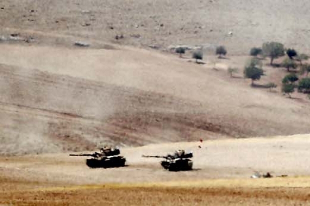 İş makineleriyle dünden itibaren yapılan yol açma çalışmalarının ardından birliklerinden çıkan tanklar, sınırı geçerek Suriye'ye girdi. Tankların gidişi sırasında zaman zaman önüne engel olarak çıkması muhtemel alanlar da top atışlarıyla ateş altına alındı.